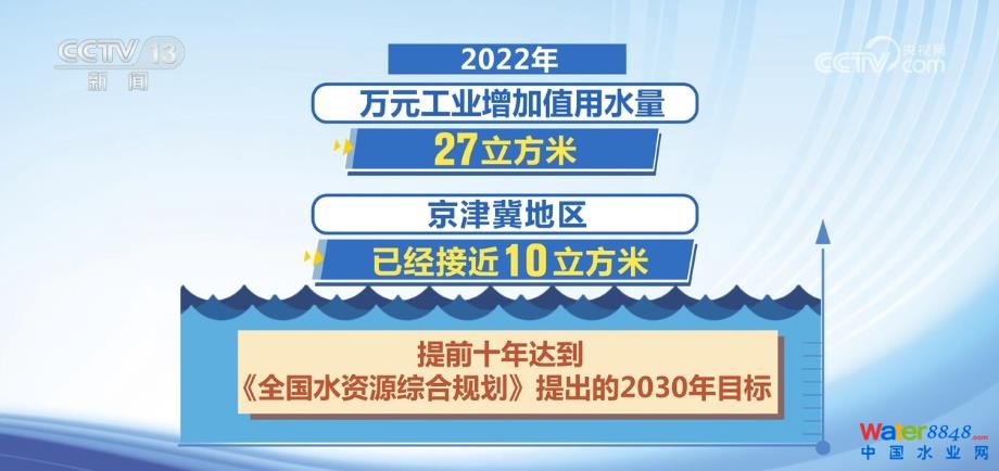 我國(guó)從“十二五”開(kāi)始施行“最嚴(yán)格的水資源管理制度”。2021年,全國(guó)萬(wàn)元工業(yè)增加值用水量較2012年下降55%。2022年,萬(wàn)元工業(yè)增加值用水量27立方米,京津冀地區(qū)已經(jīng)接近10立方米,提前十年達(dá)到《全國(guó)水資源綜合規(guī)劃》提出的2030年目標(biāo)。