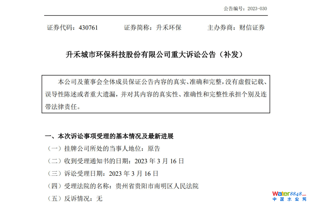 ▼升禾環(huán)保關(guān)于重大訴訟的公告