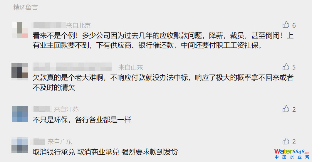 ▼“環(huán)保圈”讀者關(guān)于應(yīng)收賬款問(wèn)題的評(píng)論