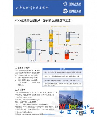 VOCs低碳回收新技術(shù):溶劑吸收解吸循環(huán) 本技術(shù)利用相似相溶原理,采用自主研發(fā)的有機(jī)溶劑作為吸收劑溶解廢氣中的VOCs組分。適用于高濃揮發(fā)性VOCs組分回收,尤其適合含F(xiàn)、Cl、Si等不宜燃燒組分。工藝優(yōu)勢:1. 具有自主知識產(chǎn)權(quán),擁有52種典型VOCs組分的吸收率數(shù)據(jù)庫;2. 不會產(chǎn)生二惡英等有毒有害物質(zhì)及HCl、HBr等腐蝕性氣體;和3. 可回收廢氣中的高價值組分,經(jīng)濟(jì)效益優(yōu)于RTO/RCO工藝等。 |