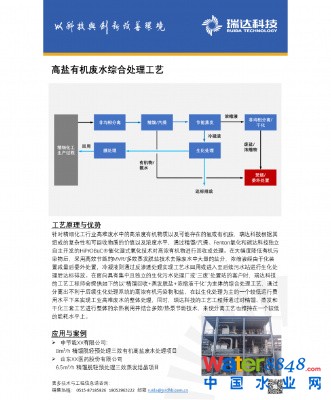 高鹽有機(jī)廢水綜合處理工藝 瑞達(dá)科技的工藝工程師設(shè)計了以“精餾回收+蒸發(fā)脫鹽+濃縮液干化”為主體的綜合處理工藝,通過分離出不利于后續(xù)生化處理系統(tǒng)的高濃有機(jī)污染物和鹽,在以生化處理為主的一個較低運(yùn)行費(fèi)用水平下來實(shí)現(xiàn)工業(yè)高難廢水的整體處理,同時,對精餾、蒸發(fā)和干化三套工藝進(jìn)行整體的余熱利用并結(jié)合多效/熱泵節(jié)能技術(shù),來使分離工藝也維持在一個較低的能耗水平上。 |