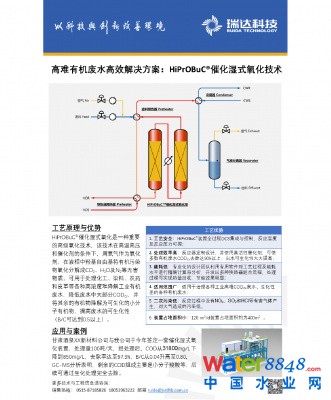 HiPrOBuC®催化濕式氧化技術(shù) HiPrOBuC®催化濕式氧化是一種重要的高級氧化技術(shù),該技術(shù)在高溫高壓和催化劑的條件下,用氧氣作為氧化劑,在液相中羥基自由基將有機(jī)污染物氧化分解成二氧化碳、水和氮?dú)獾葻o害物質(zhì)?捎糜谔幚砘ぁ⑷玖、農(nóng)藥和皮革等各種高濃度難降解工業(yè)有機(jī)廢水,降低廢水中大部分CODCr,并將其余的有機(jī)物降解為可生化的小分子有機(jī)物,提高廢水的可生化性(B/C可達(dá)到0.5以上)。 |