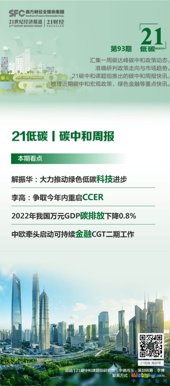 碳中和周報(bào)(第93期)丨解振華:大力推動(dòng)綠色低碳科技進(jìn)步;李高:爭(zhēng)取今年內(nèi)重啟CCER;2022年我國(guó)萬(wàn)元GDP碳排放下降0.8%
