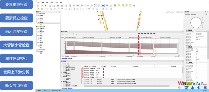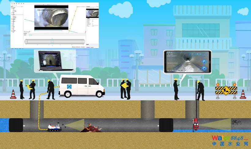 借助物聯(lián)感知、視頻內(nèi)窺、仿真模擬等技術(shù),圍繞“全面排查、周期檢測(cè)”的技術(shù)要求,利用MESURVEY數(shù)據(jù)管理軟件,進(jìn)行初步的管網(wǎng)數(shù)據(jù)梳理,理清現(xiàn)狀管網(wǎng)邏輯關(guān)系,制定排查計(jì)劃,進(jìn)行人工排查、在線監(jiān)測(cè)、視頻檢測(cè)及模擬分析等工作,分析污水系統(tǒng)設(shè)施狀況,評(píng)估管網(wǎng)瓶頸,識(shí)別管網(wǎng)問(wèn)題,為污水系統(tǒng)提質(zhì)增效提供數(shù)據(jù)支撐。