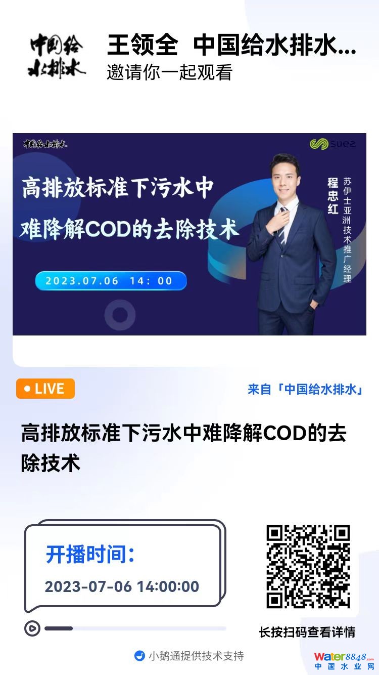 今年,蘇伊士和中國給水排水雜志社共同策劃組織了在中國給水排水直播平臺的系列講座。本次直播是系列講座之一。