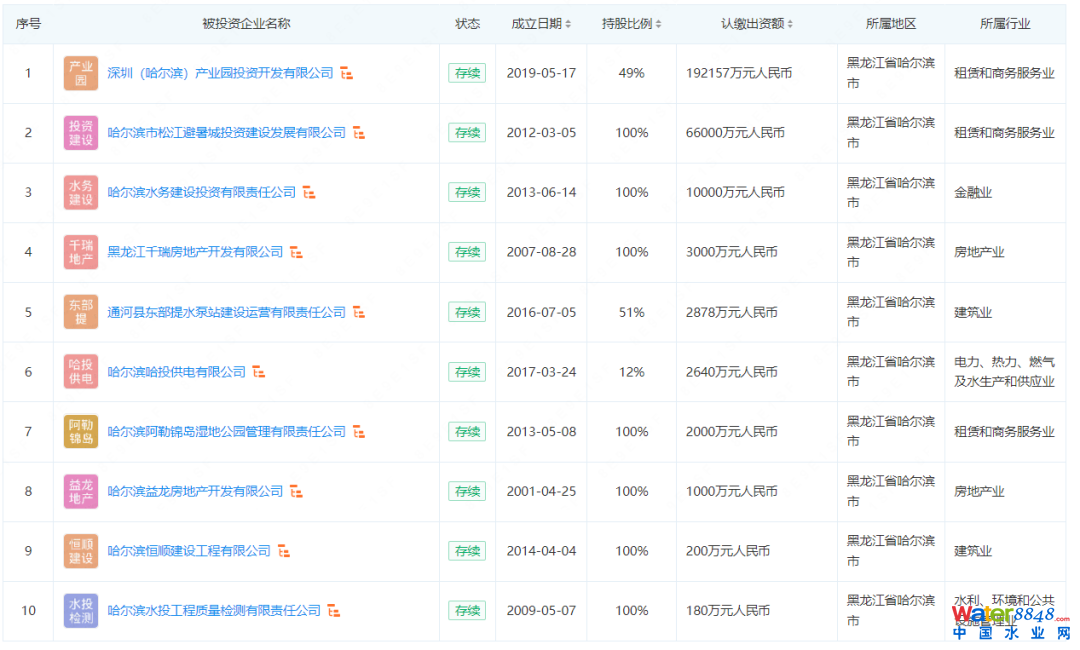 據(jù)中國水網從企查查獲悉,目前哈爾濱水務投資集團有限公司(以下簡稱“哈爾濱水務”)為哈爾濱市國資水務平臺公司,其名下目前有11家公司,從下圖中不難看出,哈爾濱水務目前干得活“比較雜”,房地產、租賃等業(yè)務也被劃入水務投資平臺中。
