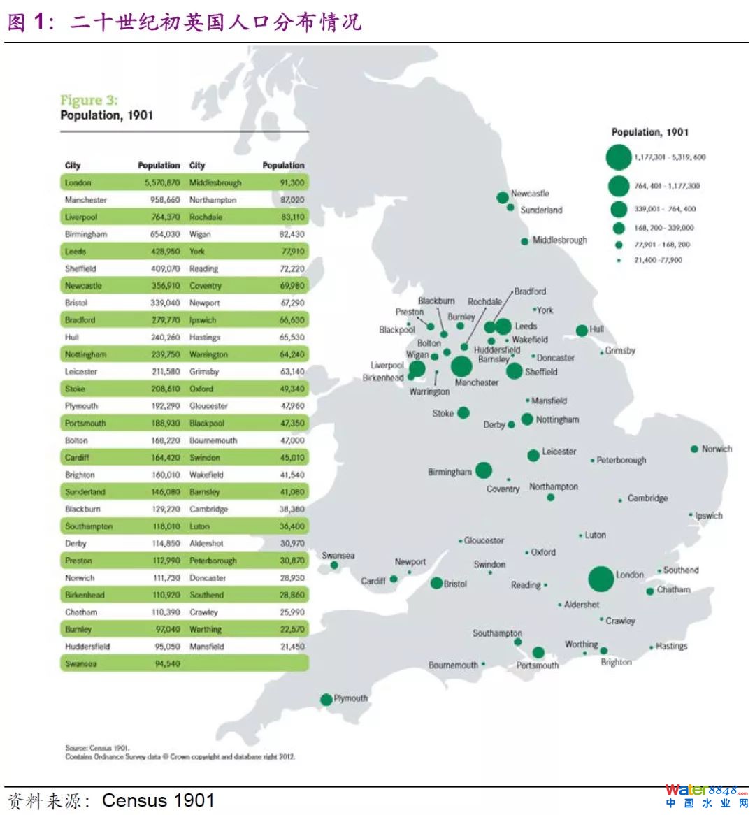 (1)英國(guó)水務(wù)行業(yè)的發(fā)展和工業(yè)化、城鎮(zhèn)化進(jìn)程緊密相連。英國(guó)的水務(wù)行業(yè)發(fā)展始于第一次工業(yè)革命,工業(yè)化成功帶來(lái)的經(jīng)濟(jì)增長(zhǎng)推動(dòng)了人口的增長(zhǎng)和城鎮(zhèn)化水平的提升,這也進(jìn)一步帶來(lái)了用水需求的快速增長(zhǎng);英國(guó)的水務(wù)基礎(chǔ)設(shè)施建設(shè)歐洲領(lǐng)先,政策的出臺(tái)(1963年的《水資源法》、1973年的《水法》及后續(xù)的修訂)持續(xù)優(yōu)化行業(yè)管理架構(gòu)和處理效率,但是水質(zhì)不達(dá)標(biāo)帶來(lái)的污染問(wèn)題和政府投資意愿的匱乏等問(wèn)題仍存;適逢當(dāng)時(shí)公用事業(yè)私有化計(jì)劃正在如火如荼地進(jìn)行中,英國(guó)政府開(kāi)始考慮水務(wù)行業(yè)的私有化。
