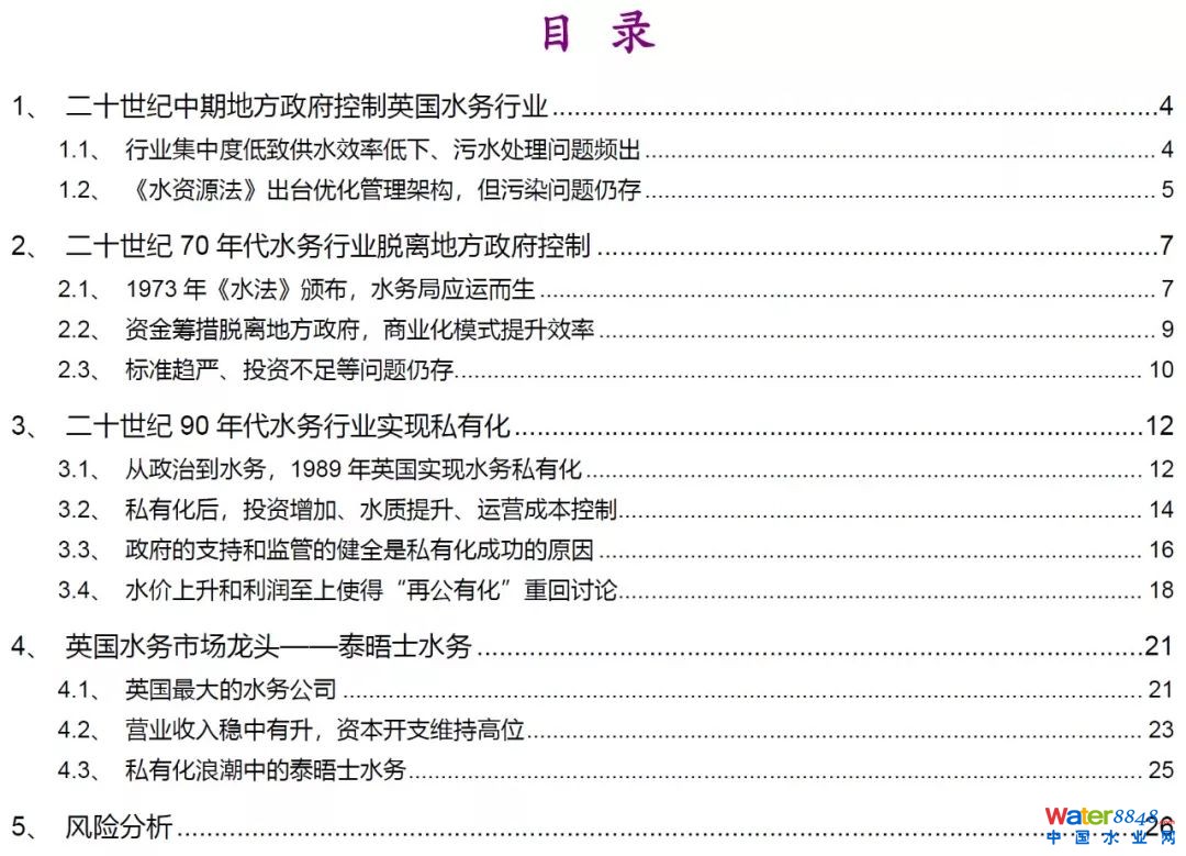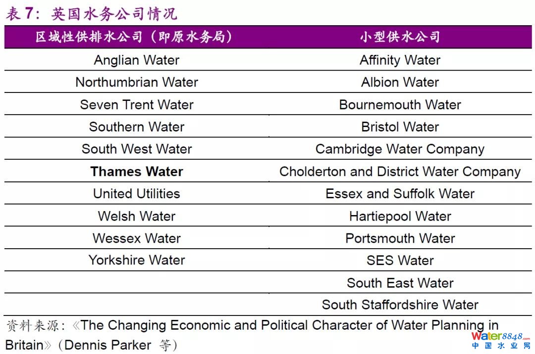 1989年11月,英國(guó)政府出售了10家水務(wù)公司,完成了水務(wù)行業(yè)的私有化。