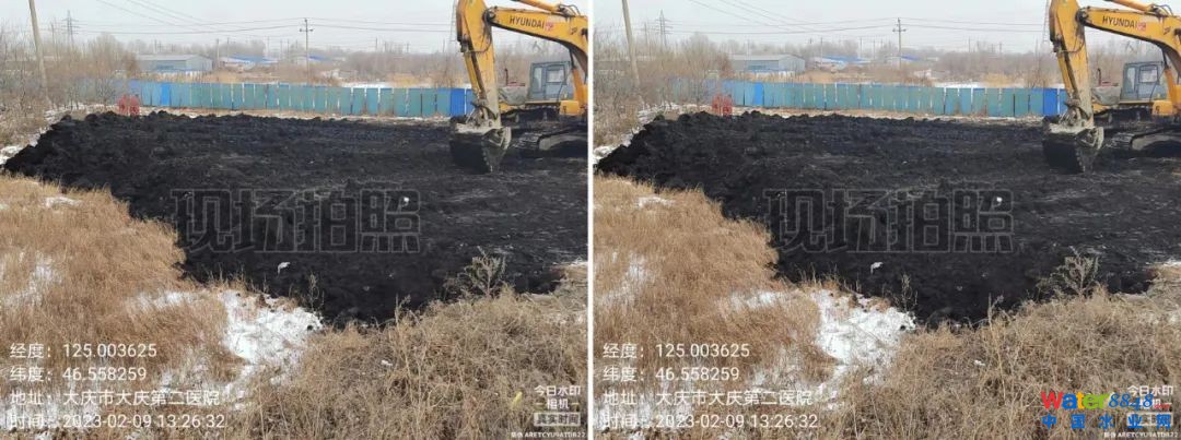 5月14日,雞西市生態(tài)環(huán)境局根據(jù)公安部門提供的“疑似該單位生產(chǎn)過程中產(chǎn)生的廢棄物、污泥排放至外環(huán)境”線索,立即赴疑似填埋危險廢物的2處地點進行現(xiàn)場勘察。經(jīng)調(diào)查,2處地點原為歷史遺留的自然坑塘,現(xiàn)場已處于被填埋狀態(tài),人工已無法直接挖掘。5月16日上午,雞西市生態(tài)環(huán)境局責成雞西市雞東生態(tài)環(huán)境局雇傭挖掘機對其中一處填埋地點進行開掘。在挖掘過程中,執(zhí)法人員發(fā)現(xiàn)坑塘內(nèi)部分土壤呈黑褐色,且存有沉積固體物質(zhì),疑似有皮革切割工藝產(chǎn)生的皮革廢碎料及動物毛皮明膠膠粒狀物質(zhì)、廢水處理污泥,惡臭刺鼻。
