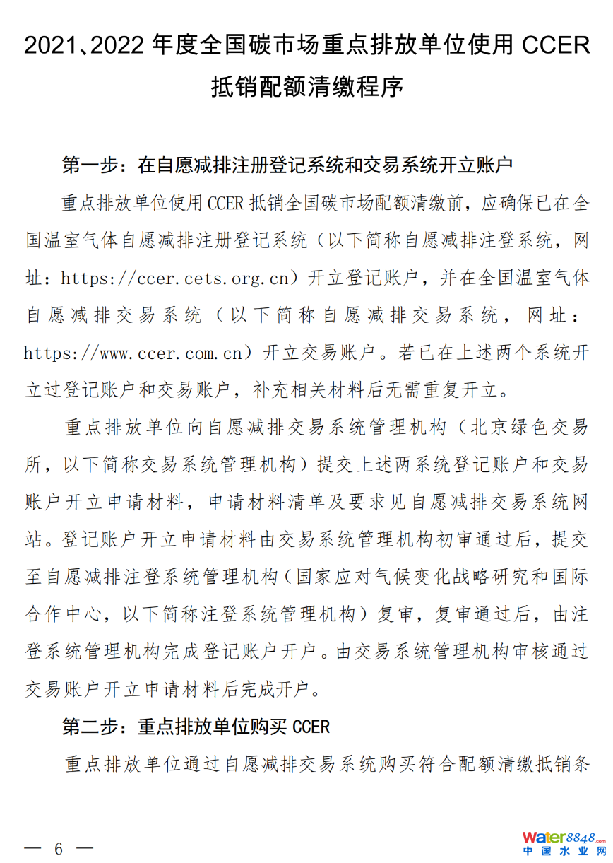 附件:2021、2022年度全國碳市場重點排放單位使用CCER抵銷配額清繳程序