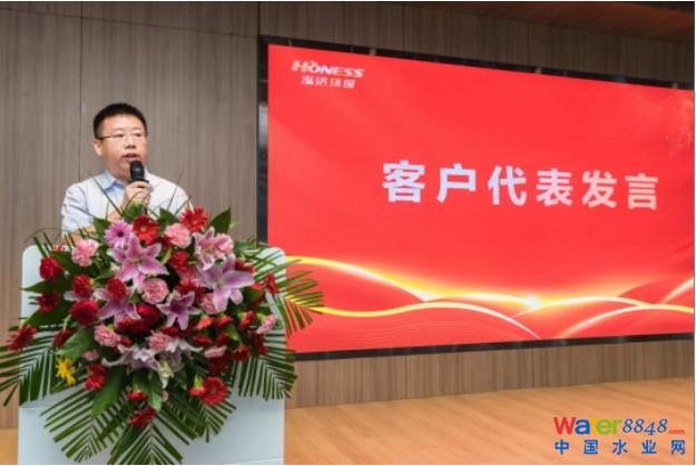 泓濟環(huán)保的發(fā)展離不開各界領(lǐng)導(dǎo)及合作伙伴的大力支持,更離不開客戶對我們的信任。今天的典禮有幸邀請到了泓濟環(huán)保的客戶代表,兩位客戶代表上臺分享了與泓濟環(huán)保的合作故事,對泓濟環(huán)保的發(fā)展理念、技術(shù)底蘊以及服務(wù)體系給予了肯定。