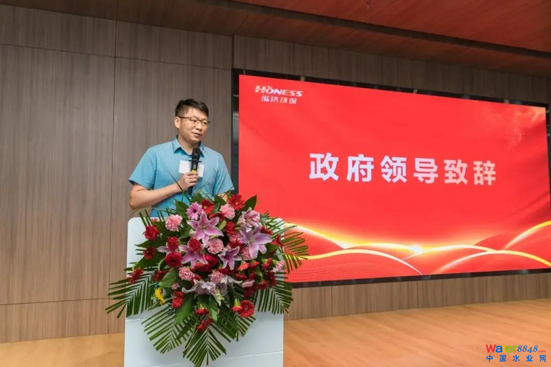 在新基地啟用儀式上,六安市金安區(qū)區(qū)委常委、金開區(qū)工委書記、管委會主任林松和泓濟環(huán)保股東、正海資本聯(lián)合創(chuàng)始人沈洪良致辭,表達了對泓濟環(huán)保新基地落成啟用的祝賀。