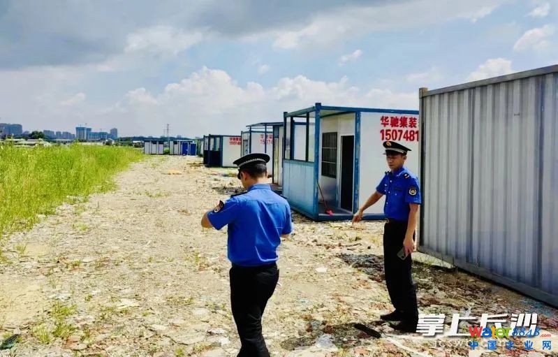 大片耕地被建筑固態(tài)垃圾填平,還建起集裝箱簡(jiǎn)易房,城管執(zhí)法人員及時(shí)保全證據(jù),控制損害。均為長沙晚報(bào)通訊員 高文 供圖