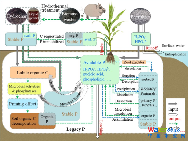 圖3. 土壤遺留磷循環(huán)及水熱炭的潛在影響作用機制