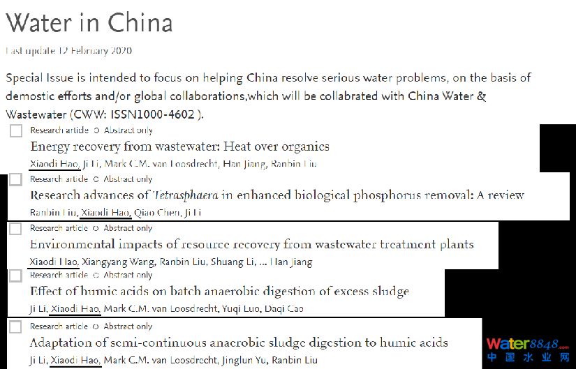Water in China收錄的北京建筑大學(xué)郝曉地教授5篇文章目錄及開(kāi)篇文章首頁(yè)