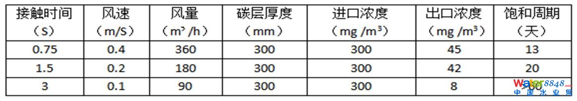 以上實驗表明當(dāng)接觸時間到3秒的飽和周期比2秒、1秒成幾倍的延長,而且適當(dāng)延長接觸時間,經(jīng)吸附處理后排出氣體,在相當(dāng)長時間內(nèi)非常穩(wěn)定。同時也說明目前市場噴涂廢氣活性炭的吸附接觸時間不到1秒,在吸附廢氣處理運行中肯定不能保證廢氣排放較長時間穩(wěn)定、合格排放。