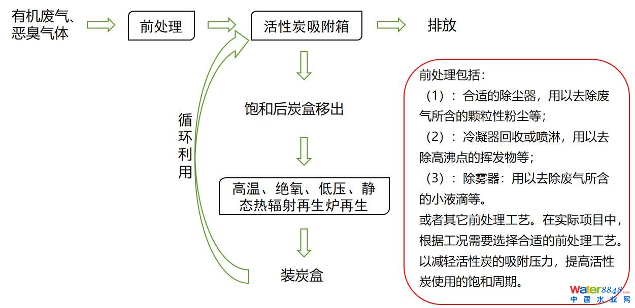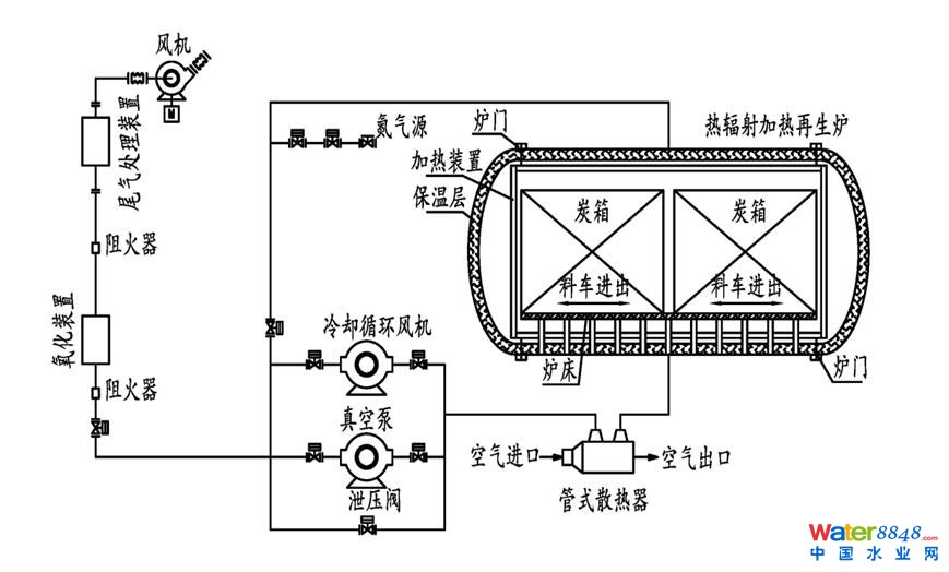 a. 解決方案:活性炭吸附飽和后原吸附箱(罐)內(nèi)高溫、絕氧、低壓、靜態(tài)再生,恢復(fù)活性炭的吸附能力。簡稱原位再生工藝。