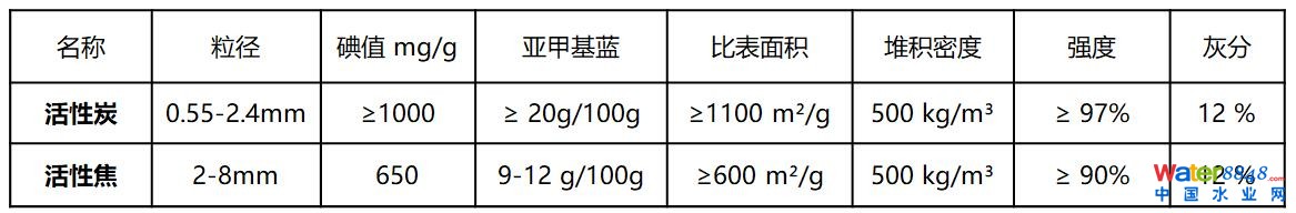 上表數(shù)據(jù)為采用相同體積的活性炭、活性焦對同一原水進行吸附處理,得出以下結(jié)果: