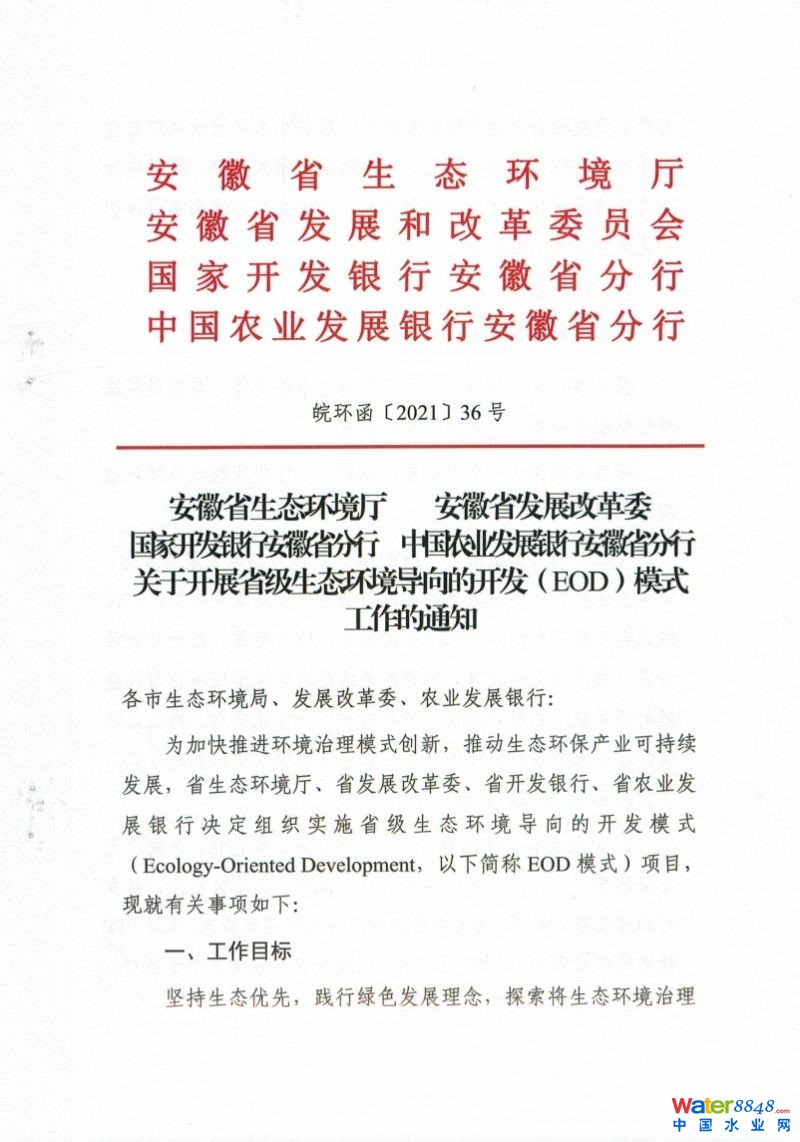 安徽。宏P(guān)于開展省級生態(tài)環(huán)境導(dǎo)向的開發(fā)(EOD)模式工作的通知
