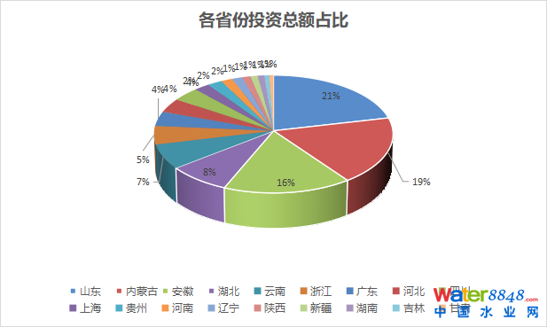 從8月項(xiàng)目中標(biāo)區(qū)域來看,山東可謂是一枝獨(dú)秀,8大項(xiàng)目釋放近40億元的市場份額,投資額占比達(dá)21%,居冠軍寶座,內(nèi)蒙古、安徽緊隨其后,總投資額超30億元,湖北、云南總投資額超10億元。