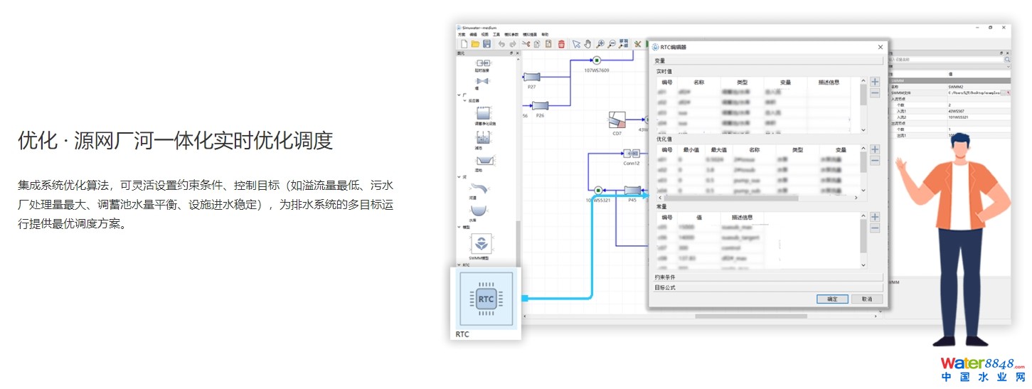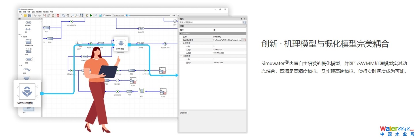城市水系統(tǒng)控制仿真軟件(Simuwater®)是立足于中國市政華北總院多年水環(huán)境治理經驗和國內外排水系統(tǒng)模擬發(fā)展最新技術和理念開發(fā)的分布式水文、水力和水質模型,是國內首個實現(xiàn)“源-網-廠-河”水量和水質耦合模擬的多要素集成模型;是國內首個可用于水系統(tǒng)輔助規(guī)劃設計和實時智能控制的多用途模型。