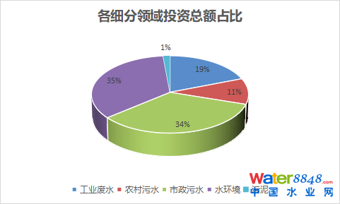 從8月項目中標的細分領域來看,水環(huán)境項目和市政污水項目總投資額都在63億元左右,不相上下,市政污水類項目數量明顯更多,但水環(huán)境類項目單體投資額更大。聚焦園區(qū)的工業(yè)廢水類大項目逐漸增多,農村污水打包類大體量項目也在逐步釋放。