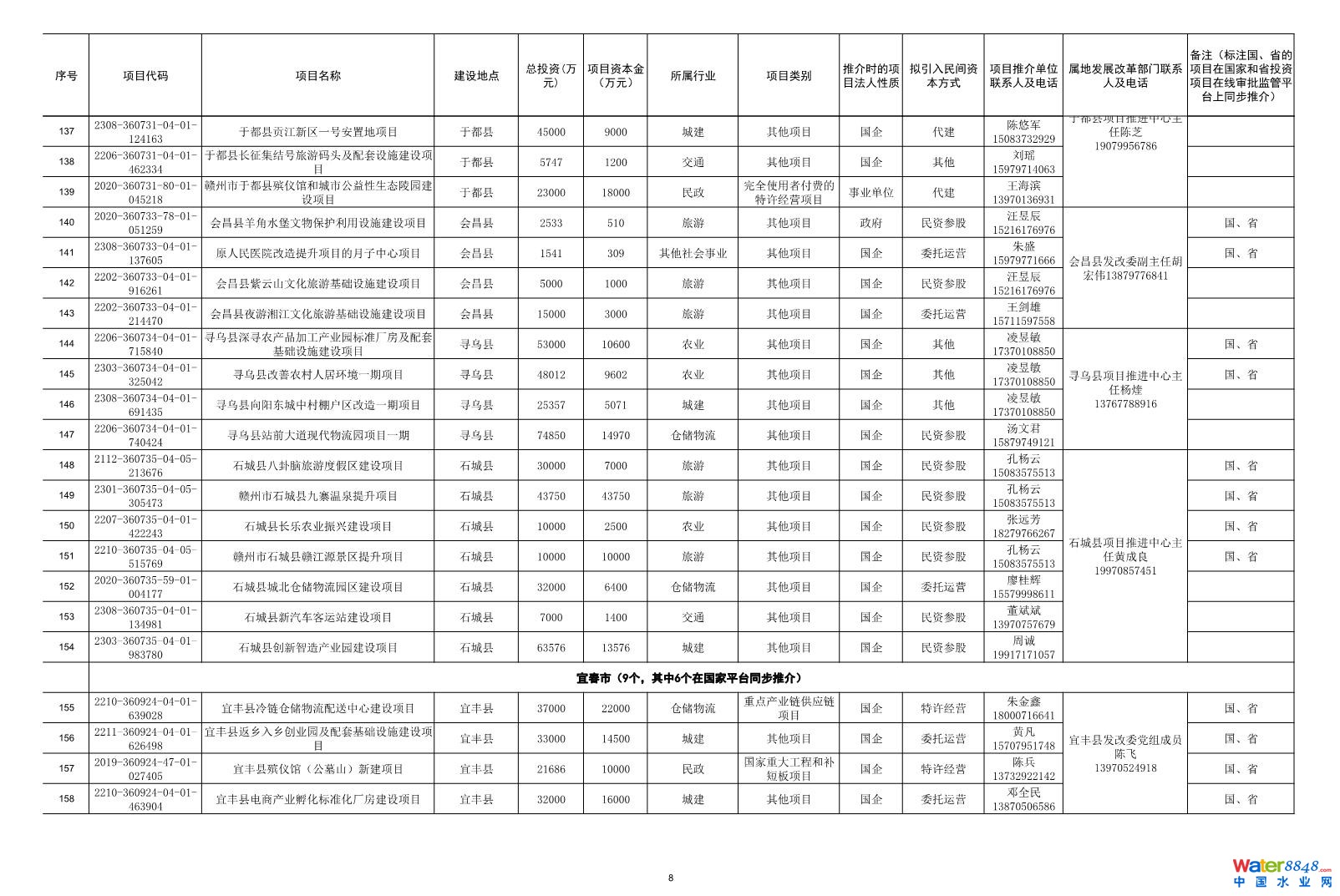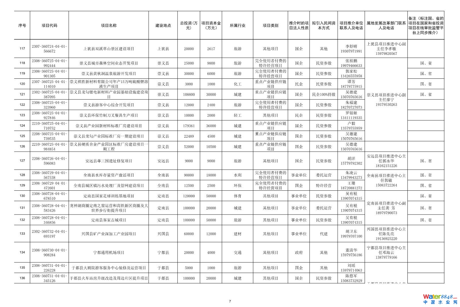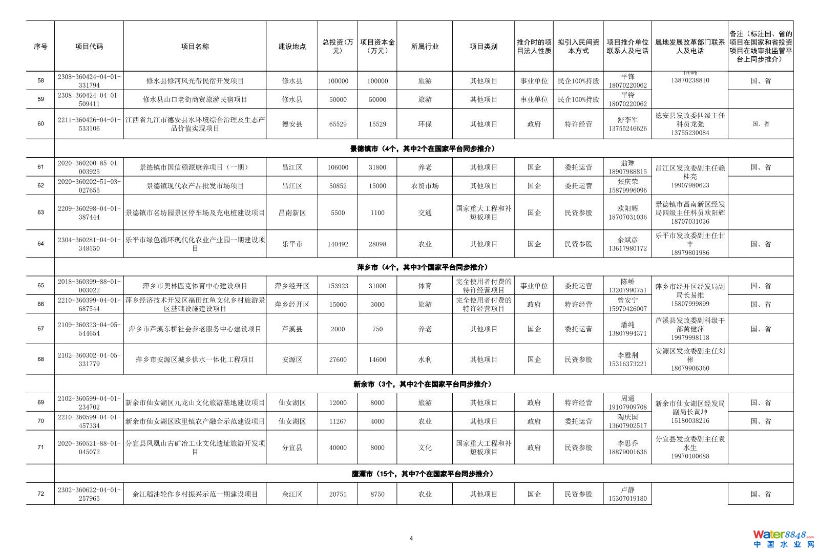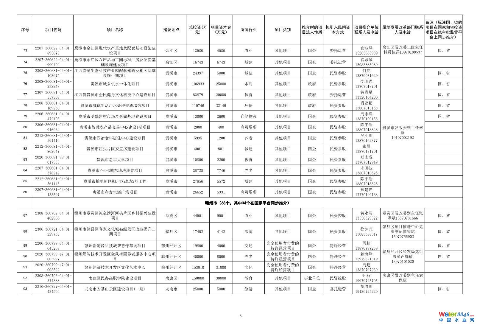 項(xiàng)目名單包括新建區(qū)昌西北污水處理廠及道路管網(wǎng)一體化工程、進(jìn)賢縣城鎮(zhèn)污水處理設(shè)施建設(shè)項(xiàng)目、濂溪區(qū)第一污水處理廠提標(biāo)改造工程、彭澤縣城西片區(qū)及彭湖灣污水管網(wǎng)治理工程、貴溪市城鎮(zhèn)生活污水處理提質(zhì)增效項(xiàng)目、全南縣城區(qū)鎮(zhèn)污水處理廠及管網(wǎng)建設(shè)項(xiàng)目、鄱陽縣蘆田片區(qū)污水處理廠提標(biāo)擴(kuò)建建設(shè)項(xiàng)目、弋陽縣生活垃圾分類與資源綜合利用處置中心項(xiàng)目、灣里管理局水生態(tài)安全改造提升建設(shè)項(xiàng)目、九江經(jīng)開區(qū)水環(huán)境治理開發(fā)項(xiàng)目、江西省九江市德安縣水環(huán)境綜合治理及生態(tài)產(chǎn)品價(jià)值實(shí)現(xiàn)項(xiàng)目、信豐縣餐廚廢棄物處理項(xiàng)目等生態(tài)環(huán)保項(xiàng)目。