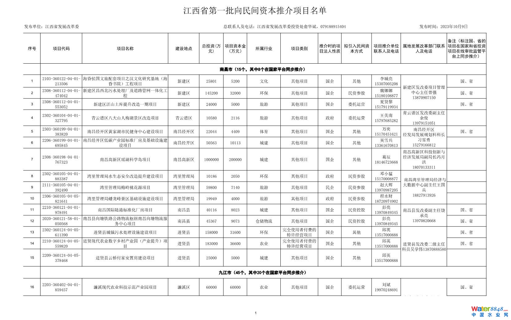 總投資1040億!江西省第一批向民間資本推介項(xiàng)目名單公布!含多個(gè)環(huán)保項(xiàng)目