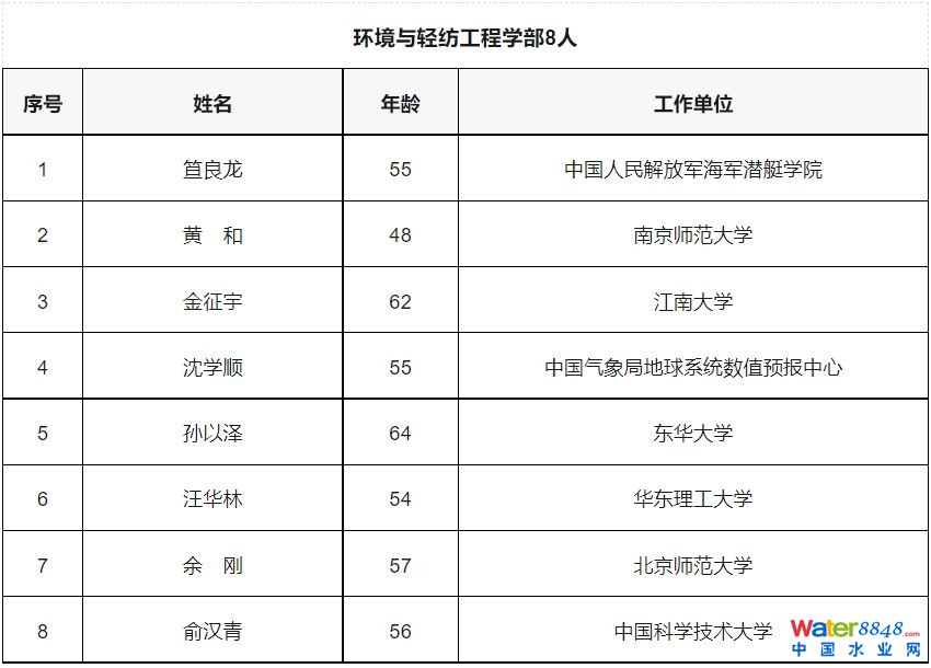 中國工程院增選共選舉產(chǎn)生了74位中國工程院院士,其中,增選的中國工程院院士中8位來自環(huán)境與輕紡工程學(xué)部,以下為具體名單: