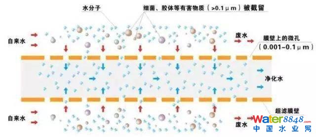 70年代超濾(UF)。超濾從70年代進(jìn)入工業(yè)化應(yīng)用后發(fā)展迅速,是以壓力為推動(dòng)力的膜分離過程,通過膜表面的微孔篩選可將直徑為0.002-0.1μm之間的顆粒和雜質(zhì)截留,可有效去除水中膠體、硅、蛋白質(zhì)、微生物和大分子有機(jī)物。當(dāng)液體混合物在一定的壓力推動(dòng)下流經(jīng)膜表面時(shí),溶劑及小分子物質(zhì)透過膜,而大分子物質(zhì)則被截留,從而實(shí)現(xiàn)大小,分子間的分離和凈化目的。可廣泛的應(yīng)用于物質(zhì)的分離、濃縮、提純。