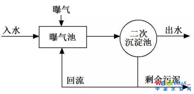 - 活性污泥法:向曝氣池中富含有機(jī)污染物并有細(xì)菌的廢水中不斷地通人空氣(曝氣),在一定的時(shí)間后就會(huì)出現(xiàn)懸浮態(tài)絮狀的泥粒,這實(shí)際上是由好氧菌(及兼性好氧菌)所吸附的有機(jī)物和好氧菌代謝活動(dòng)的產(chǎn)物所組成的聚集體,具有很強(qiáng)的分解有機(jī)物的能力,稱之為“活性污泥”。從曝氣池流出的污水和活性污泥混合液經(jīng)沉淀池沉淀分離后,澄清的水被排放,污泥作為種泥回流到曝氣池,繼續(xù)運(yùn)作。這種以活性污泥為主體的生物處理法稱為活性污泥法。
