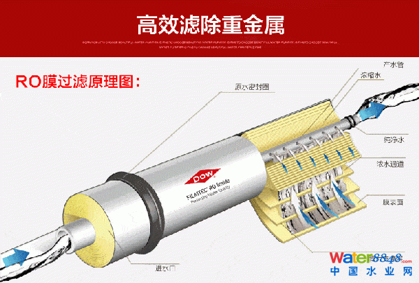反滲透(RO):1960年 Loeb和Souriringan首次研制成世界上具有歷史意義的非對稱反滲透膜,這在膜分離技術(shù)發(fā)展中是一個(gè)重要的突破,使膜分離技術(shù)進(jìn)入了大規(guī)模工業(yè)化應(yīng)用的時(shí)代。過濾精度為0.0001微米左右,是美國60年代初研制的一種超高精度的利用壓差的膜法分離技術(shù)?蔀V除水中的幾乎一切的雜質(zhì)(包括有害的和有益的),只能允許水分子通過。也就是說用反滲膜制水的過程中,一定會(huì)浪費(fèi)將近50%以上的自來水。這是一般家庭不能接受的。一般用于純凈水、工業(yè)超純水、醫(yī)藥超純水的制造。反滲透技術(shù)需要加壓、加電,流量小,水的利用率低,不適合大量生活飲用水的凈化。