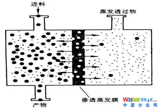90年代滲透汽化(滲透蒸發(fā))。用于液(氣)體混合物分離的一種新型膜技術(shù)。它是在液體混合物中組分蒸氣分壓差的推動(dòng)下,利用組分通過致密膜溶解和擴(kuò)散速度的不同實(shí)現(xiàn)分離的過程。