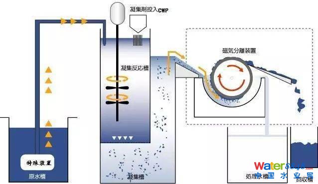 磁分離技術(shù)是近年來發(fā)展的一種新型的利用廢水中雜質(zhì)顆粒的磁性進(jìn)行分離的水處理技術(shù)。對于水中非磁性或弱磁性的顆粒,利用磁性接種技術(shù)可使它們具有磁性。磁分離技術(shù)應(yīng)用于廢水處理有三種方法:直接磁分離法、間接磁分離法和微生物—磁分離法。目前研究的磁性化技術(shù)主要包括磁性團(tuán)聚技術(shù)、鐵鹽共沉技術(shù)、鐵粉法、鐵氧體法等,具有代表性的磁分離設(shè)備是圓盤磁分離器和高梯度磁過濾器。目前磁分離技術(shù)還處于實(shí)驗(yàn)室研究階段,還不能應(yīng)用于實(shí)際工程實(shí)踐。