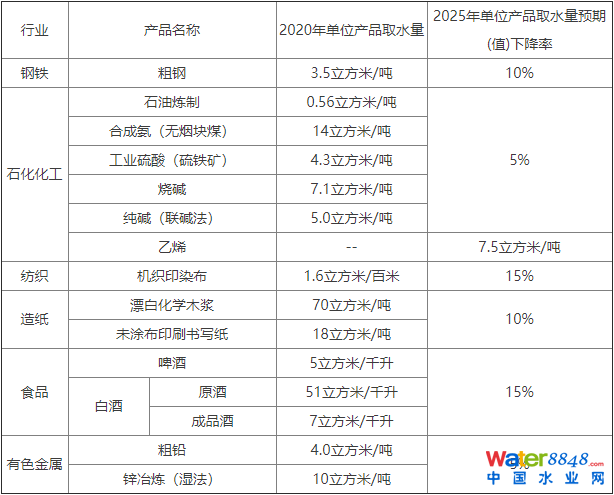 表 重點(diǎn)行業(yè)主要產(chǎn)品水效提升預(yù)期目標(biāo)