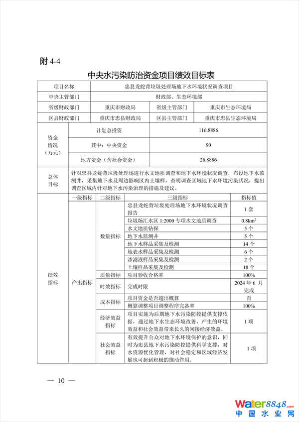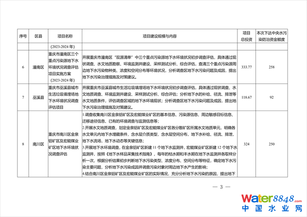 重慶市財(cái)政局提前下達(dá)2024年中央水污染防治資金預(yù)算,本次廈大資金45041萬元,用以支持重慶市銅梁區(qū)太平生活垃圾處理廠及周邊地下水環(huán)境狀況調(diào)查評(píng)估項(xiàng)目等33個(gè)項(xiàng)目。