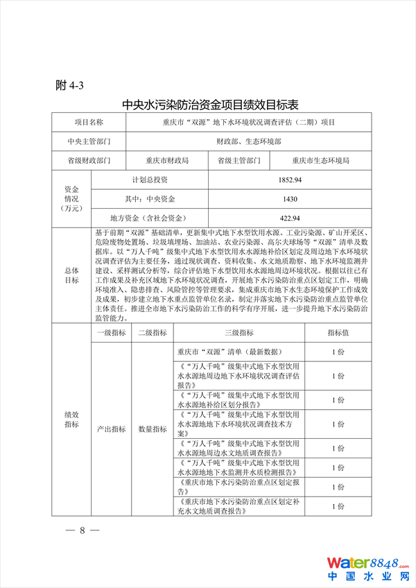 重慶市財(cái)政局關(guān)于提前下達(dá)2024年中央水污染防治資金預(yù)算的通知