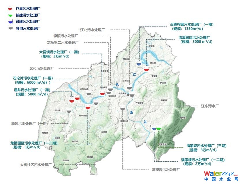 該項目由重慶公司與長江環(huán)保上游公司聯(lián)合中標,重慶公司承擔施工份額13.61億元,主要包含“四區(qū)五類”,既新城區(qū)“廠網(wǎng)河湖岸”一體綜合治理示范區(qū)、臨港經(jīng)濟區(qū)“廠網(wǎng)一體”改造提升區(qū)、清溪園區(qū)“廠網(wǎng)一體”改造提升工程區(qū)、白濤潘家壩污水處理廠區(qū)。