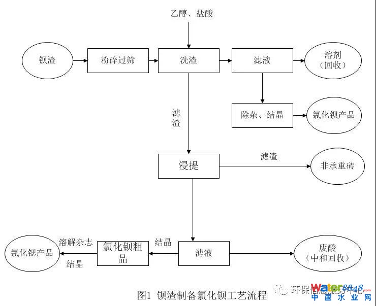 處置方式:目前,我國針對含鋇廢物的處置方式主要有資源化利用、水泥窯協(xié)同處置、安全填埋等,以減少其對生態(tài)環(huán)境和人體健康的危害。資源化利用主要是利用含鋇廢渣生產(chǎn)化學基礎原料,其中利用鋇渣制備氯化鋇的工藝流程如圖1。