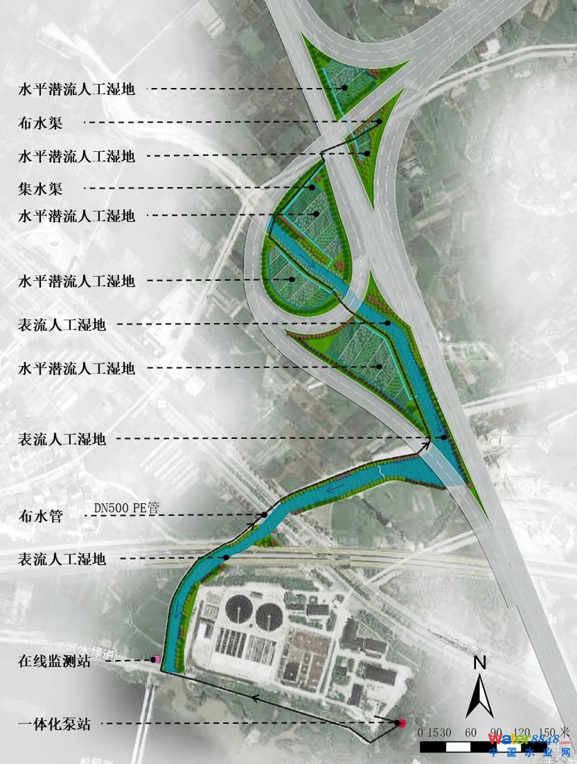 項目通過兩級人工濕地構(gòu)建工程、水質(zhì)監(jiān)測工程等建設(shè),充分利用現(xiàn)有土地性質(zhì)和使用效率,用生態(tài)的方式最大程度提升污水處理廠尾水有效減少松陽縣污水處理廠入河污染物排放量,提升松陰溪水環(huán)境質(zhì)量。建設(shè)內(nèi)容包括建設(shè)一體化泵站一套,建設(shè)水平潛流人工濕地20070平方米,表流人工濕地13200平方米,水質(zhì)在線監(jiān)測設(shè)備及基礎(chǔ)建設(shè)。