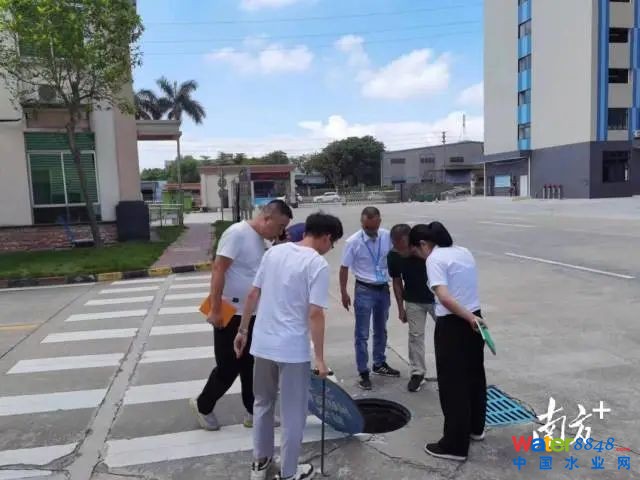 現(xiàn)場檢查廣東天賜灣實驗室裝備制造有限公司管網(wǎng)建設(shè)。蘆苞鎮(zhèn)供圖