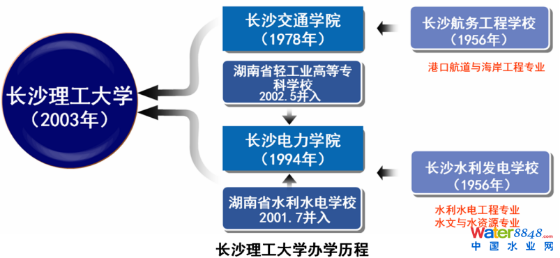 長沙理工大學(xué)水利與環(huán)境工程學(xué)院是長沙理工大學(xué)辦學(xué)歷史最久的學(xué)院之一,其辦學(xué)始于1956年交通部長沙航務(wù)工程學(xué)校的港航專業(yè)和電力工業(yè)部長沙水力發(fā)電學(xué)校的水利專業(yè)。2003年4月,經(jīng)教育部和湖南省人民政府批準,由原國家交通部所屬的長沙交通學(xué)院和原國家電力公司所屬的長沙電力學(xué)院合并組建成長沙理工大學(xué),隨即成立水利(河海)工程學(xué)院。2021年9月10日,水利(河海)工程學(xué)院調(diào)整組建水利與環(huán)境工程學(xué)院。