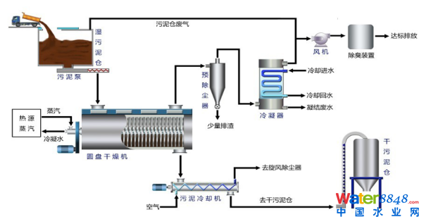 余熱蒸汽污泥干化工藝系統(tǒng)圖