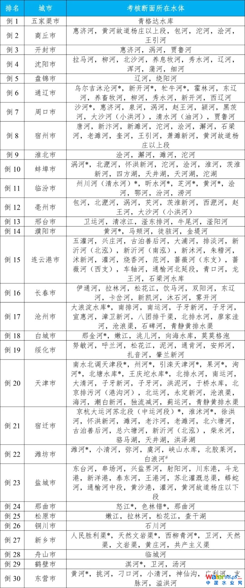 四、地級及以上城市國家地表水考核斷面排名