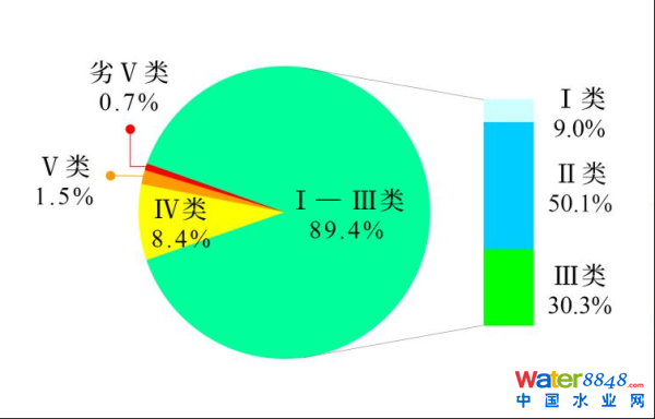 1—12月,3641個國家地表水考核斷面中,水質(zhì)優(yōu)良(Ⅰ—Ⅲ類)斷面比例為89.4%,同比上升1.5個百分點;劣Ⅴ類斷面比例為0.7%,同比持平。主要污染指標為化學(xué)需氧量、總磷和高錳酸鹽指數(shù)。