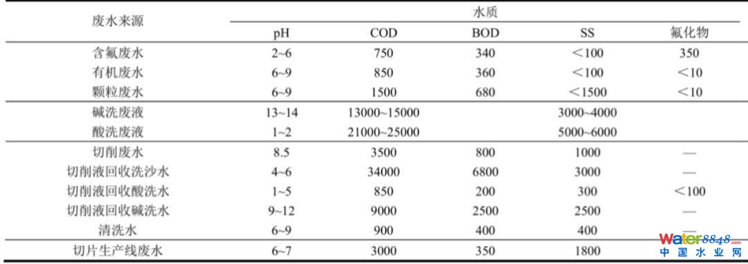 晶硅電池板分段工藝生產(chǎn)廢水水質(zhì)參數(shù)(僅供參考)