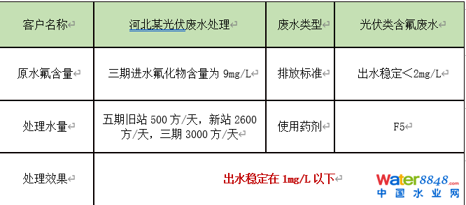 經(jīng)典案例詳示:項目名稱:河北某光伏廢水深度除氟項目
