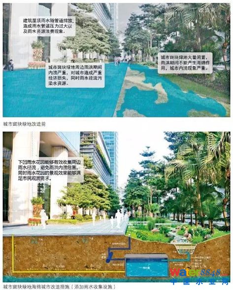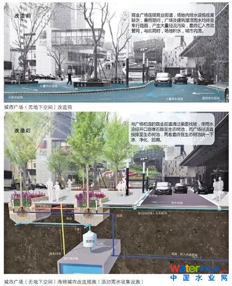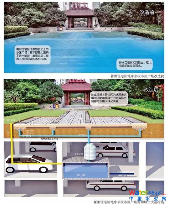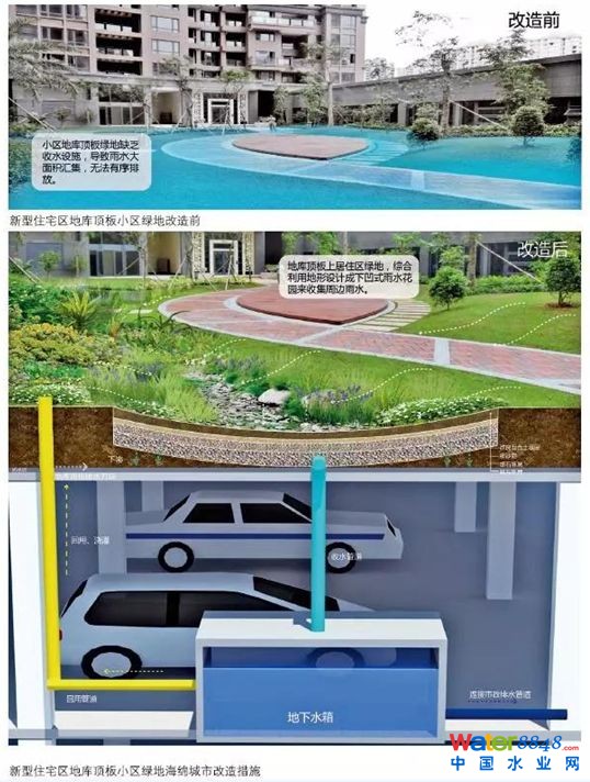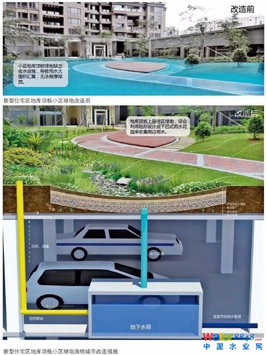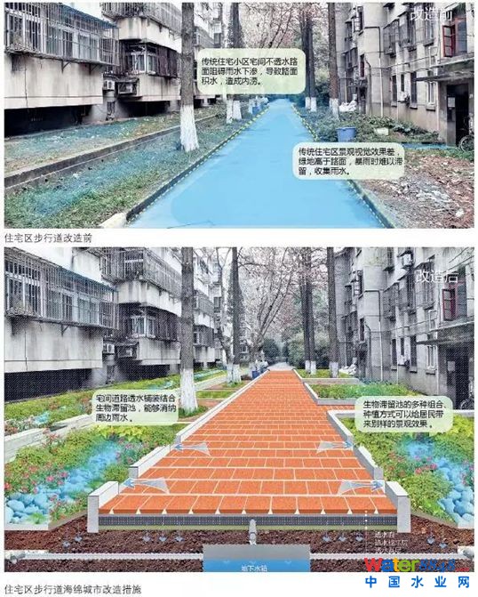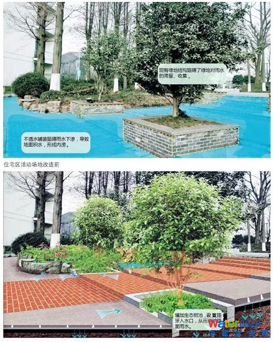 傳統(tǒng)住宅區(qū)中的宅間道路和綠化帶可以改造成透水路面和生物滯留池,用來收集道路上的雨水,避免路面雨水沉積對(duì)居民生活造成影響。