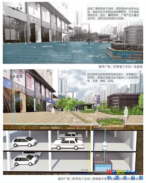 高層住宅區(qū)中的硬質(zhì)廣場(chǎng)可以結(jié)合透水鋪裝、排水明溝及生物滯留設(shè)施,設(shè)計(jì)成一個(gè)集收集、凈化、儲(chǔ)存雨水于一體的良性循環(huán)系統(tǒng)。