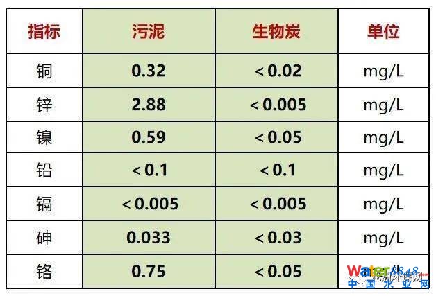 表:污泥與生物炭重金屬浸出濃度值
